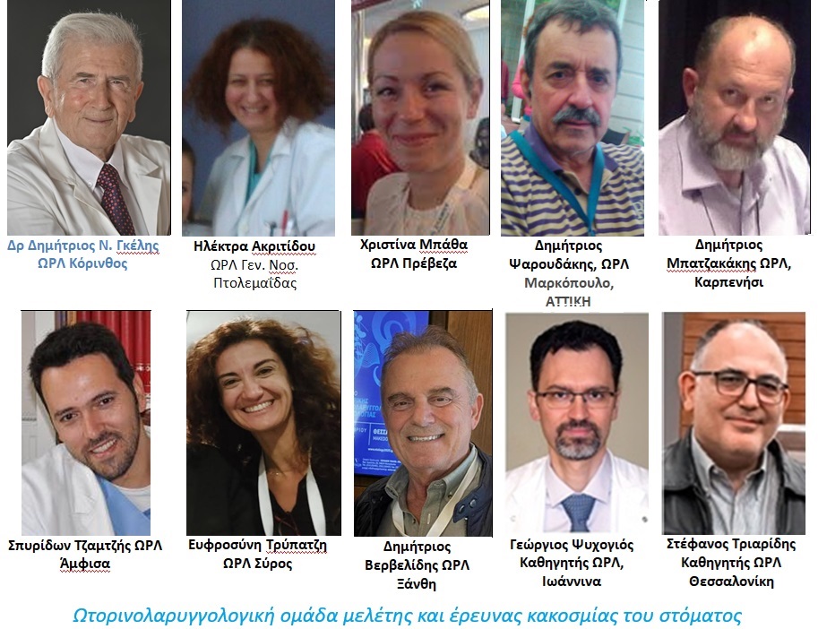 Ωτορινολαρυγγολογική ομάδα μελέτης και έρευνας κακοσμίας του στόματος: Δρ Δημήτριος Ν. Γκέλης, Ηλέκτρα Ακριτίδου, Χριστίνα Μπάθα, Δημήτριος Ψαρουδάκης, Δημήτριος Μπατζακάκης, Σπυρίδων Τζαμτζής, Ευφροσύνη Τρύπατζη, Δημήτριος Βερβελίδης, Γεώργιος Ψυχογιός, Στέφανος Τριαρίδης